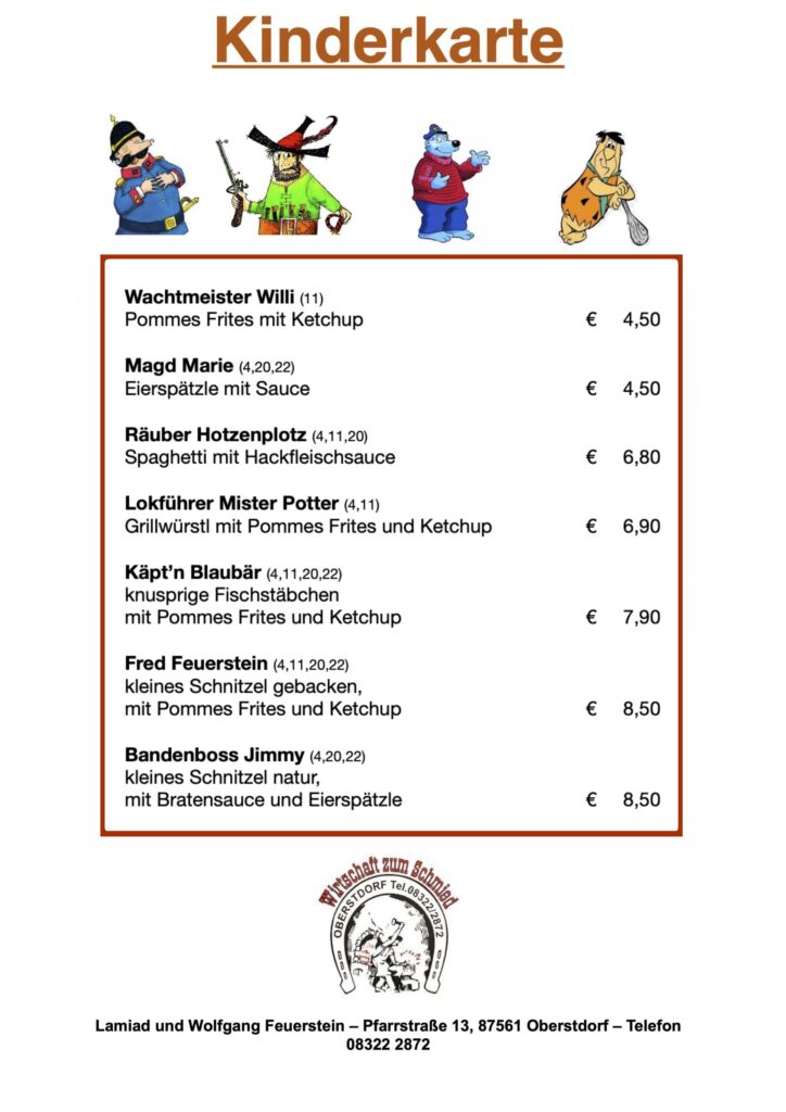 Auch für unsere kleinen Gäste haben wir eine Speisekarte mit vielen leckeren Gerichten,